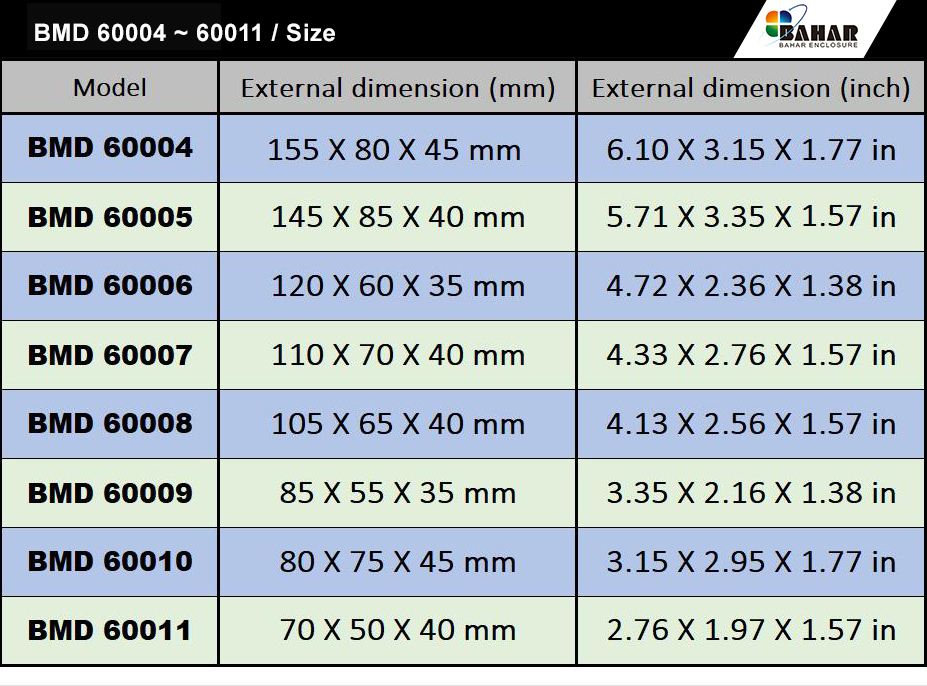 Bahar BMD series provides user-friendly plastic casing for electronics. Versatile, portable, stylish boxes in various sizes, designs and colors customizable for specific needs.