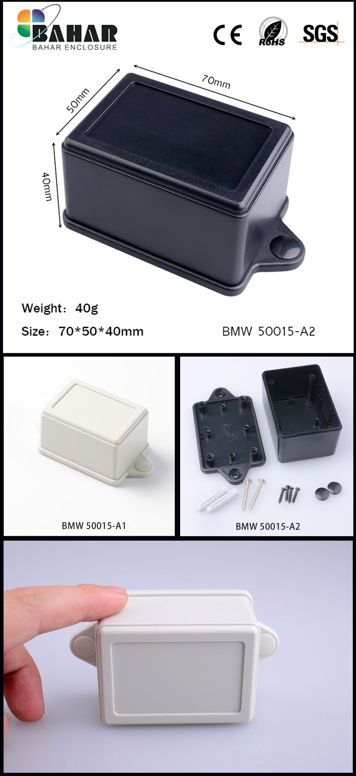 Bahar BMW series offers user-friendly plastic casing products for walls or tables in different sizes, designs and colors. Ideal for electronic projects with access to information and components.