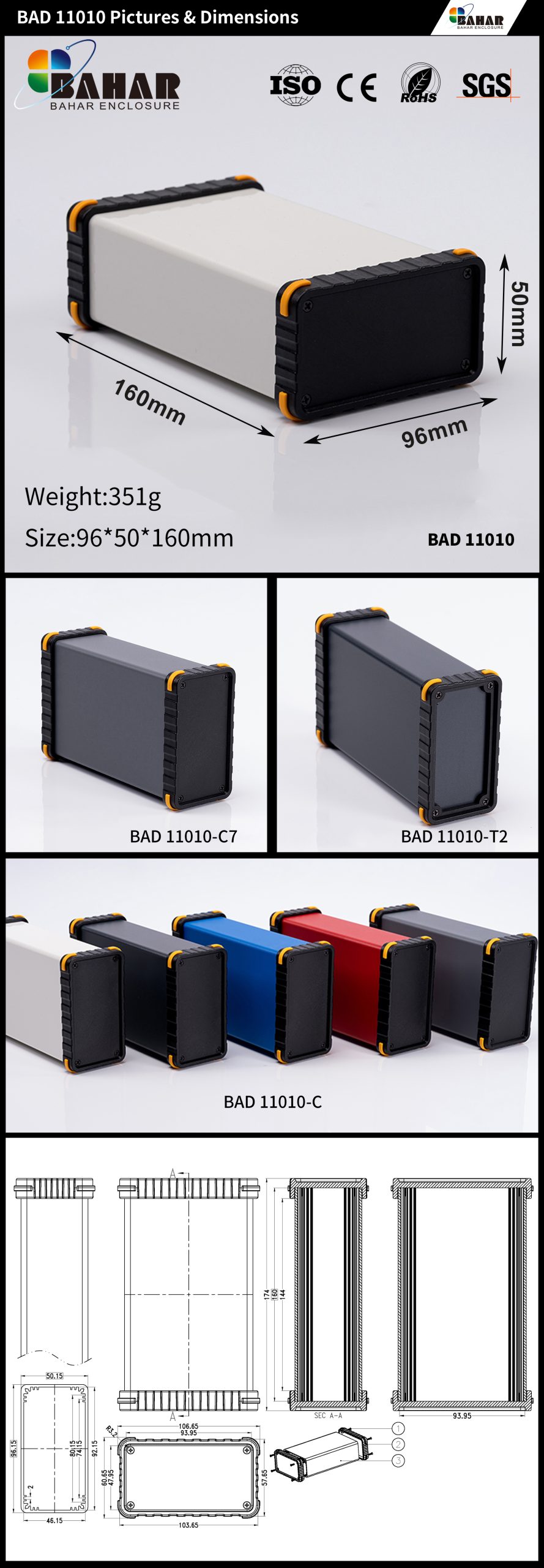 The Bahar BAD series features high -quality aluminum casing products for electronics, made using advanced aluminum extrusion technology. They offer excellent heat transfer ,environmental protection and variety of sizes ,designs and colors for customization.