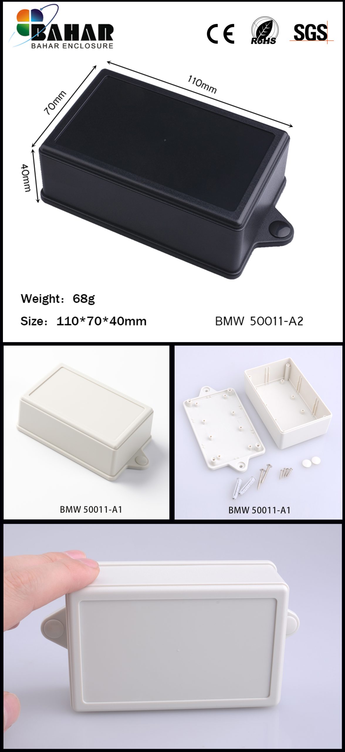 Bahar BMW series offers user-friendly plastic casing products for walls or tables in different sizes, designs and colors. Ideal for electronic projects with access to information and components.