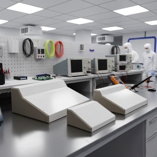 Sloped iron enclosures with ABS side panels offering strong yet lightweight protection, multiple sizes, and customization options for industrial and electronic equipment.