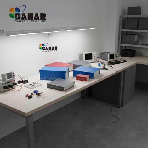 Shop NowMetal enclosures combining iron and aluminum, featuring angled design, robust protection, and red or gray color options for industrial electronic applications.